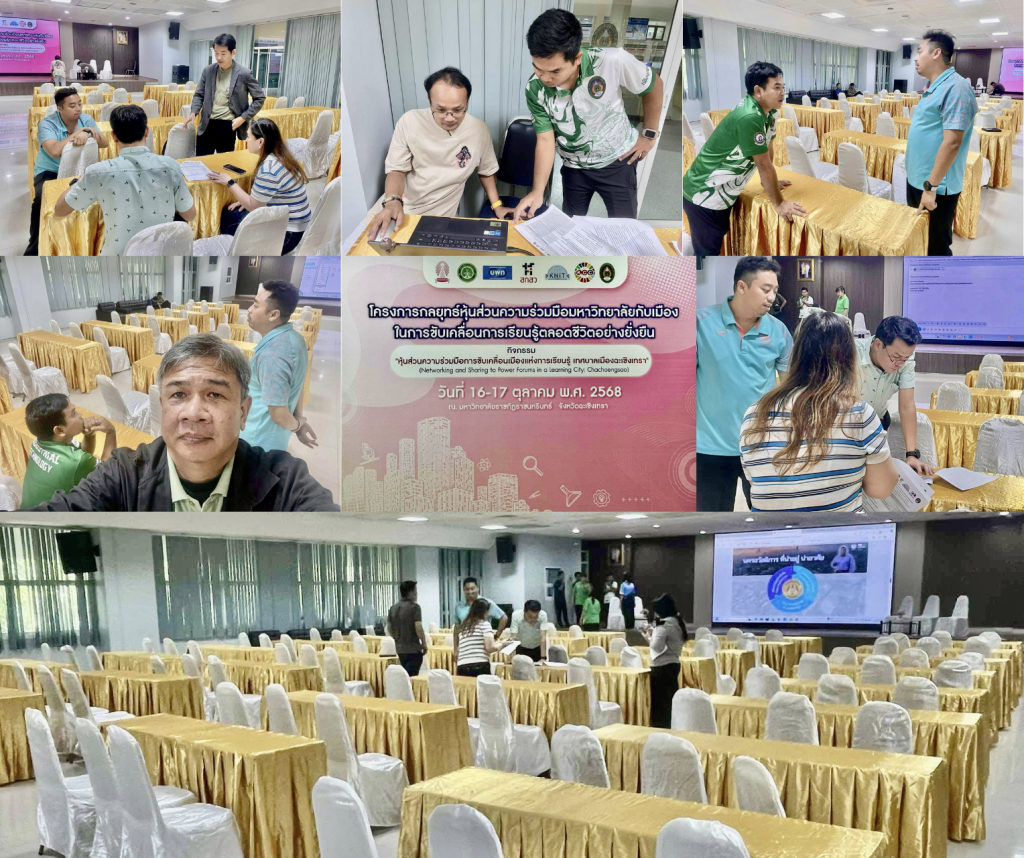 วันพุธที่ 15 ตุลาคม 2568 เวลา 14.30 น. ผศ.ครรชิต มาระโภชน์ รองอธิการบดี ประชุมร่วมกับงานประชาสัมพันธ์ และบุคลากรงานเทคโนโลยีสารสนเทศและการสื่อสาร สำนักวิทยบริการและเทคโนโลยีสารสนเทศ มหาวิทยาลัยราชภัฏราชนครินทร์ เพื่อวางแผนในการจัดเตรียมอุปกรณ์สำหรับถ่ายทอดสด กิจกรรม “หุ้นส่วนความร่วมมือการขับเคลื่อนเมืองแห่งการเรียนรู้” โดยกิจกรรมดังกล่าว มีการลงพื้นที่ประชุมย่อยเพื่อแลกเปลี่ยนการเรียนรู้การขับเคลื่อนการดำเนินงานเมืองแห่งการเรียนรูู้ จำนวน 7 จังหวัดโดยคณะผู้วิจัยจากจุฬาลงกรณ์มหาวิทยาลัยที่จะจัดขึ้น ในระหว่างวันพฤหัสบดีและวันศุกร์ที่ 16 – 17 ตุลาคม 2568 ณ ห้องโชคอนันต์ ชั้น 2 อาคารเรียนรวมและอำนวยการ มหาวิทยาลัยราชภัฏราชนครินทร์
