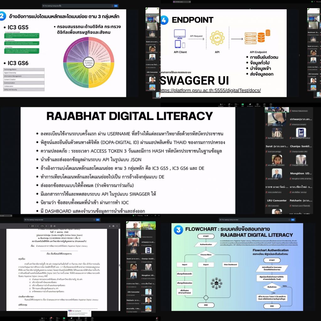 เข้าร่วมประชุม เรื่อง การนำเสนอแนวทางการพัฒนาระบบคลังข้อสอบ Rajabhat Digital Literacy จัดโดย มหาวิทยาลัยราชภัฏพิบูลสงคราม ผ่านการประชุมออนไลน์ (Zoom Meeting)
